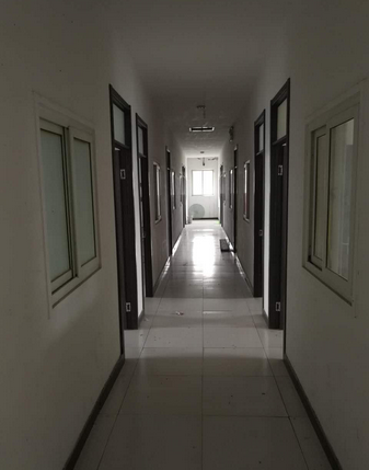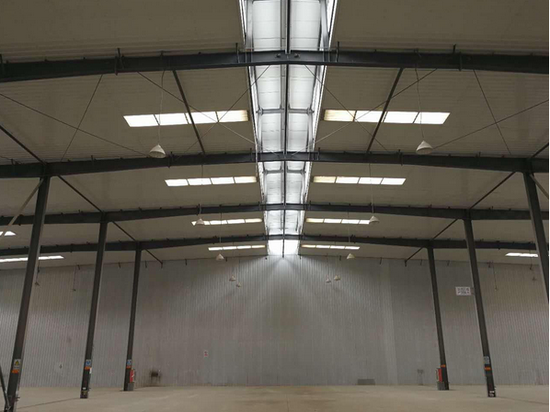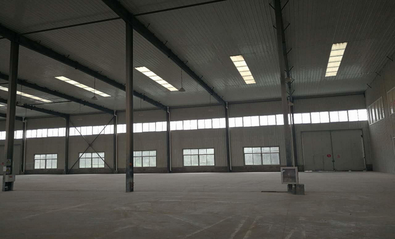 库房彩钢岩棉材料,金刚砂地面,1.25米内置高台,9米净高,消防设施齐备;办公楼通水、电、暖气、网络