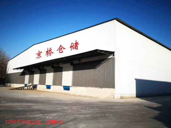 京桥仓储燕郊库由一个3200平米层高9米的独立库和30000多平米的双层库组成,一层高5米,二层高4米,为钢架结构彩钢屋顶,有升降货梯多部,库房配备了全天候的消防系统,烟感报警系统、视频监控系统、24小时安保值班、叉车服务、办公用房及宿舍1000平米,可满足各类用户需求