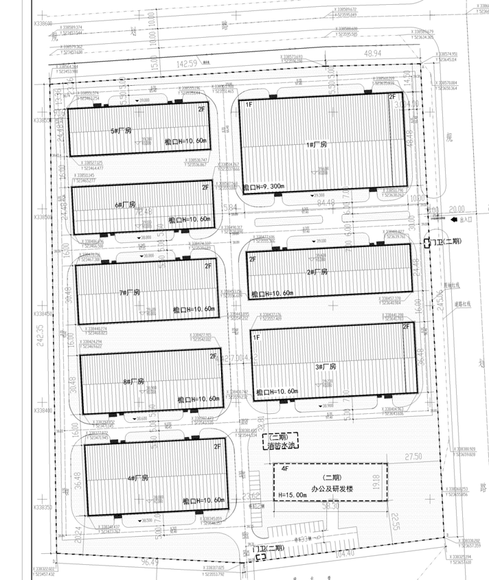 项目:用地内共有8栋厂房和1栋研发楼,总占地面