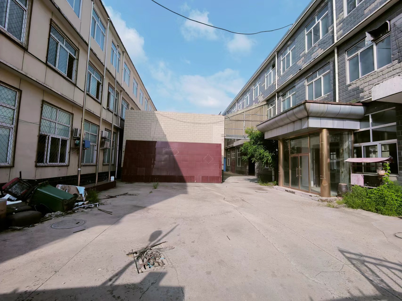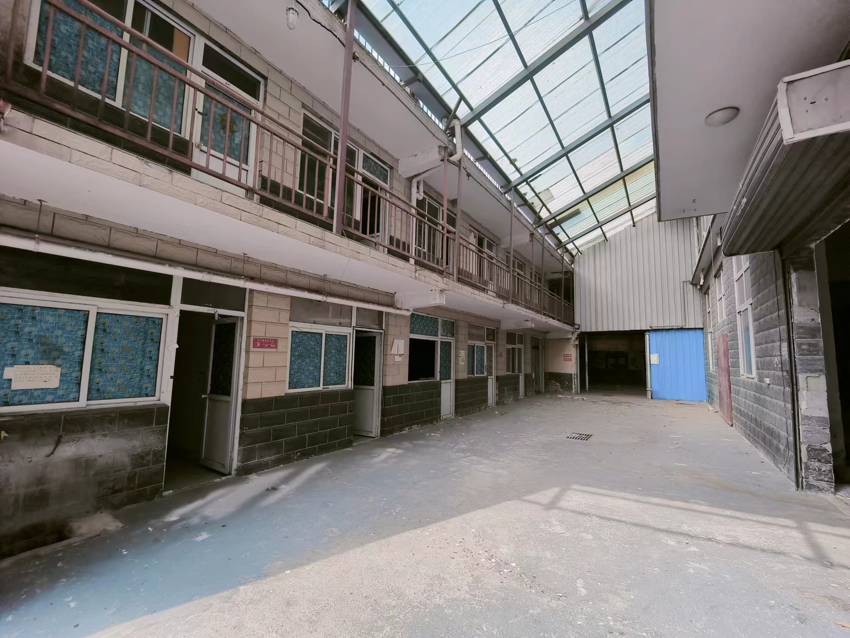(二)、独院总占地面积2300平米,院内库房三层共2100平米,一层高4.5米,二三层高3.5米,配套办公住宿房750平米,水,电,网,燃气齐全,配套设施完善。