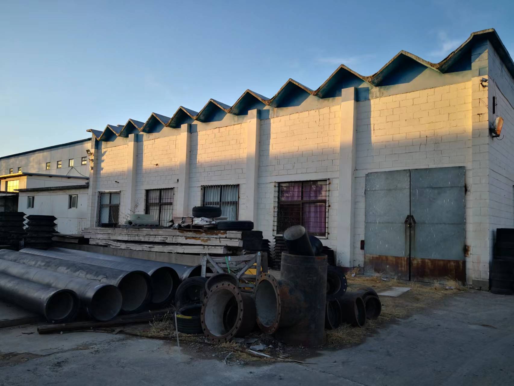 (二)场地占地面积12.5亩,场地内有多栋建筑:一栋二层办公楼建筑面积450平米;一栋库房建筑面积400平米;平房6间建筑面积145平米;仓储大棚近千平。