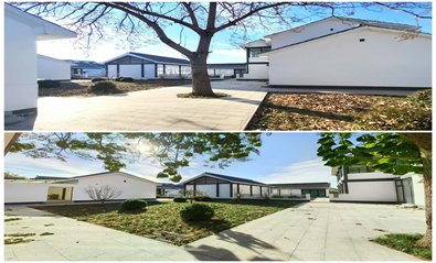 四、独院总体占地面积2398平米,可使用建筑面积1012平米,共42个房间,用到绿地围墙面积1386平米,空间和绿化充足。
