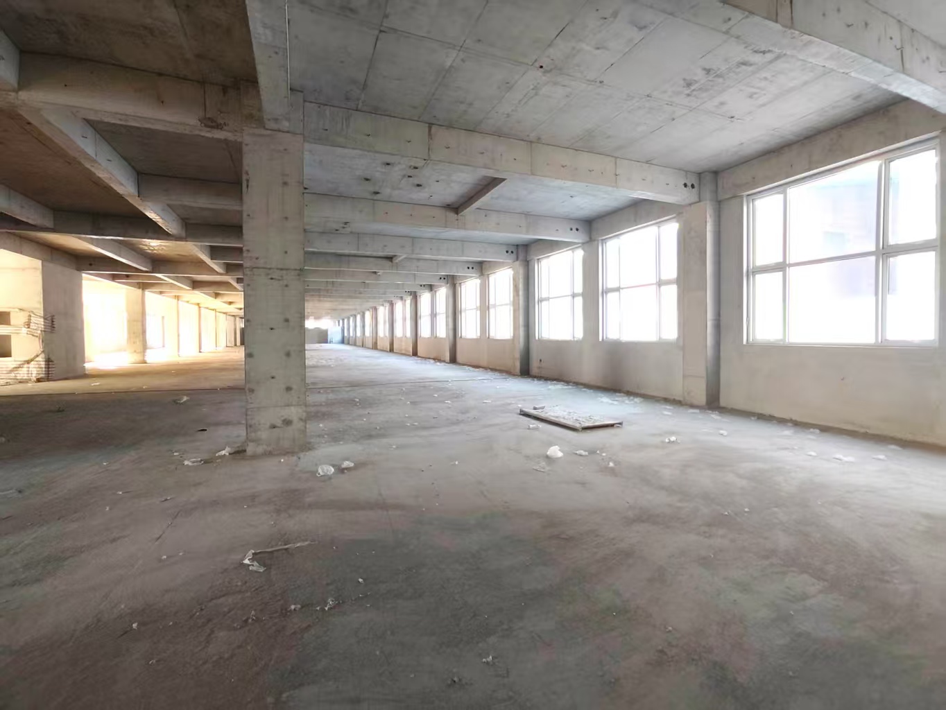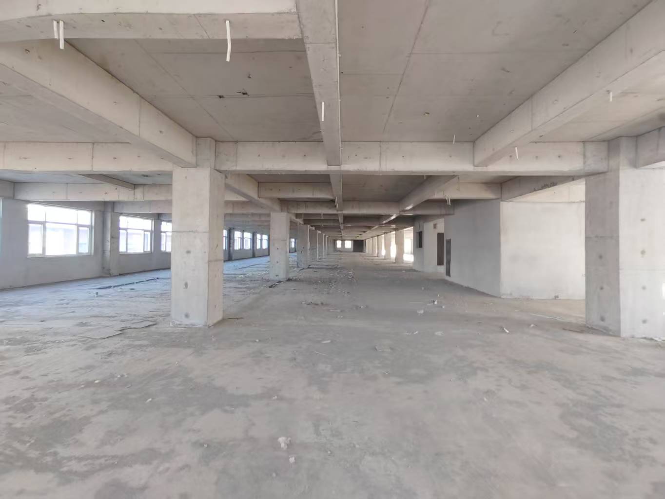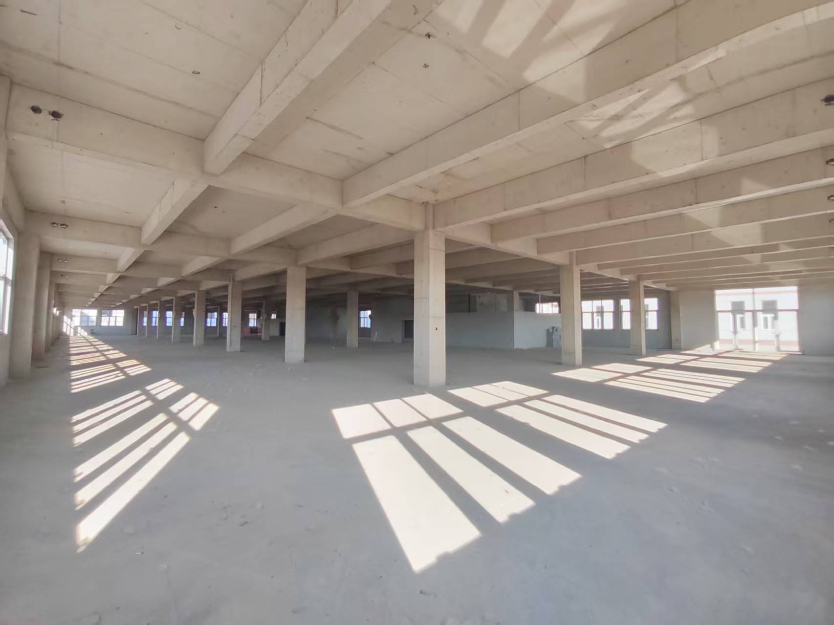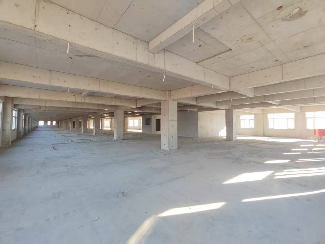 独立三栋,框架结构浇筑厂房(毛坯)。单层使用面积2400平米,首层高5米,二层及以上高3.8米,配套电梯,地下一层相通。